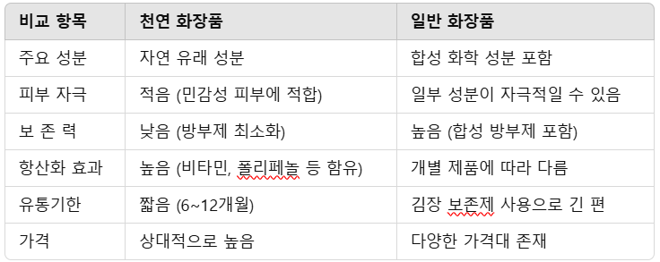 5. 천연 화장품과 일반 화장품 비교